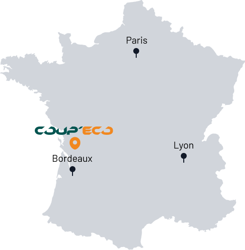 Installée à Pons, en Charente-Maritime, Coup’Eco bénéficie d’une position stratégique au cœur de la France. À seulement 2h30 de Paris, 40 minutes de Bordeaux et 5h45 de Lyon, l’entreprise est facilement accessible, garantissant proximité et réactivité pour ses clients et partenaires.
