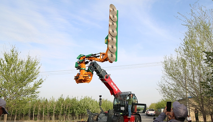 Le Meteor T400 offre une grande polyvalence grâce à ses quatre longueurs de lamier disponibles, de 1,9 m à 7,7 m, et ses outils interchangeables (scies Ø700 mm ou plateaux Ø900 mm). Cela permet d’adapter l’outil à la nature du végétal, au niveau de finition attendu et à la typologie du chantier.